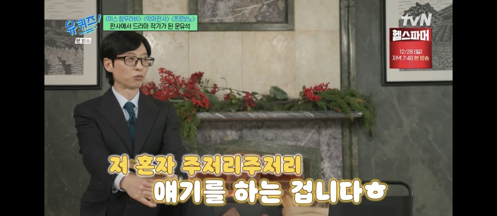 유재석은 24일 방송된 tvN 토크 예능물 ‘유 퀴즈 온 더 블럭’ 324회에서 판사 출신 작가 문유석이 게스트로 나오기 전 이렇게 느꼈다.
