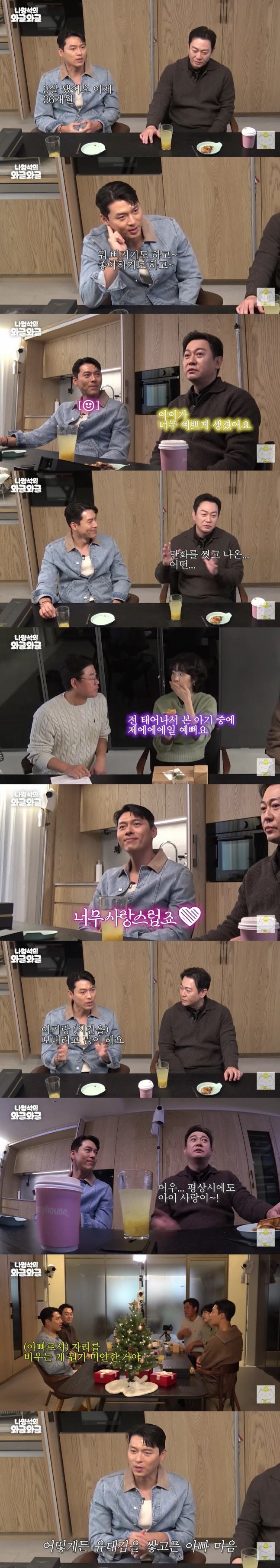 나영석은 “잘생겼다, 이런 걸 떠나서 제일 귀여울 때”라고 했다. 현빈은 “너무 사랑스럽다. 그래서 일이 없으면 아기랑 시간을 보내려고 한다”고 했다.