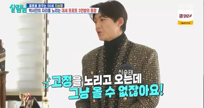 지상렬은 신승태의 의상을 보더니 “어디 달러 아줌마 옷을 빌려 입었냐?”고 놀렸고, 신승태는 “고정 노리고 오는데 그냥 올 수 없지 않냐?”며 야심을 드러냈다. 세 사람은 ‘살림남’ 고정을 향한 강한 의지를 내비치며 유쾌한 분위기를 만들었다.