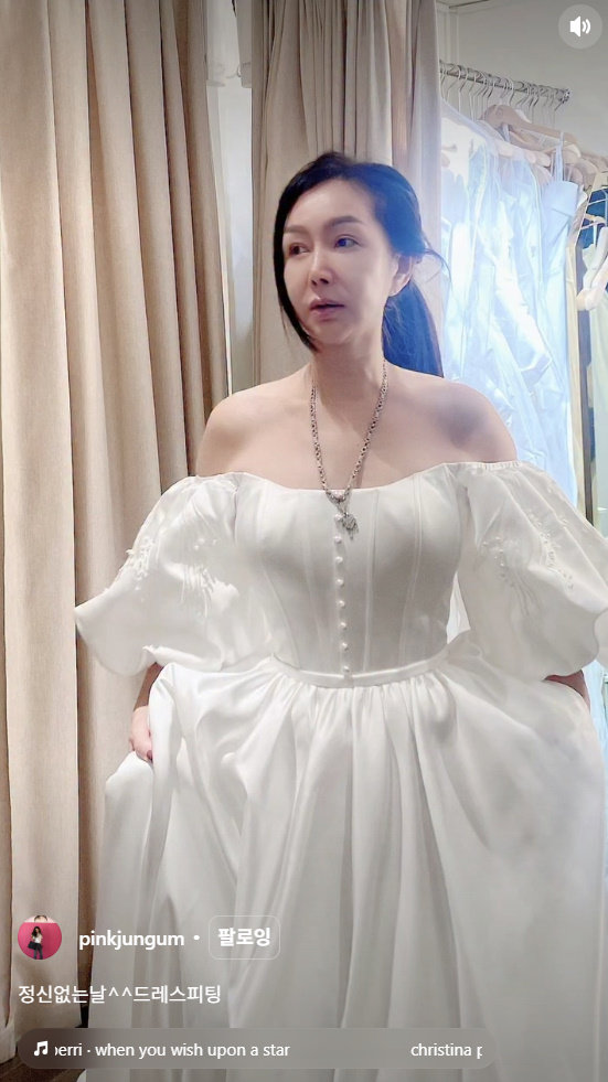 박준금은 28일 자신의 사회관계망서비스(SNS) 계정에 “정신없는 날, 드레스 피팅”이라는 글과 함께 사진을 올렸다.