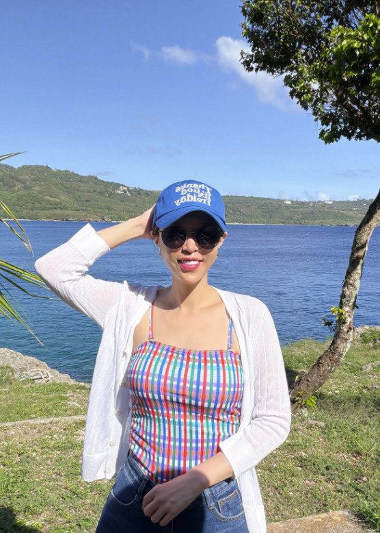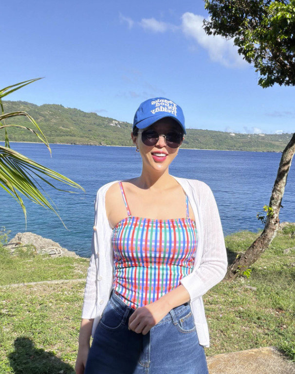 ‘7세 연하 문원과 열애’ 신지, 사이판서 글래머 몸매 과시…날렵 턱선까지