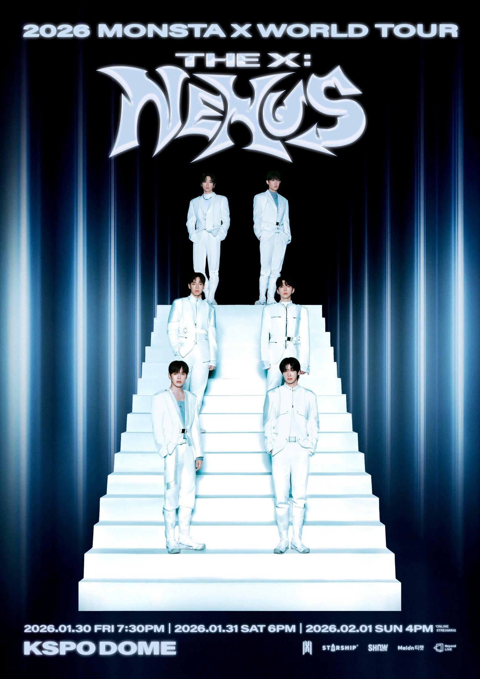 1일 소속사 스타쉽엔터테인먼트에 따르면, 이날 오후 4시 서울 KSPO DOME에서 열리는 ‘2026 몬스타엑스 월드 투어 ’더 엑스 : 넥서스‘의 공연이 전 세계에 실시간 송출된다. 이번 공연은 글로벌 송출 플랫폼 비욘드 라이브(Beyond LIVE)를 통해 온라인 유료 생중계를 진행, 현장을 찾지 못하는 팬들과도 함께하며 공연장의 뜨거운 열기를 실시간으로 전할 예정이다.