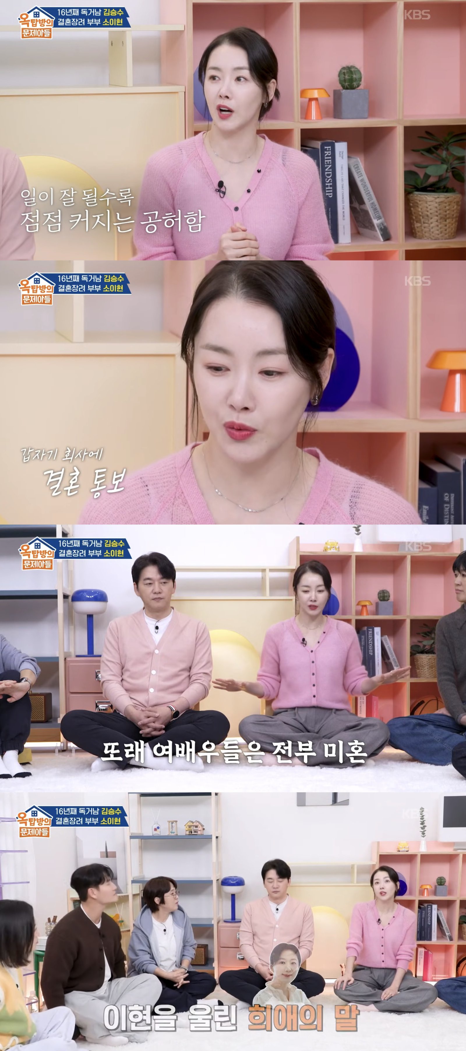 소이현은 “31살에 결혼했는데 제 주변 여배우는 아무도 결혼하지 않았었다”며 “한창 일이 잘 풀리는 시기였다”고 했다.