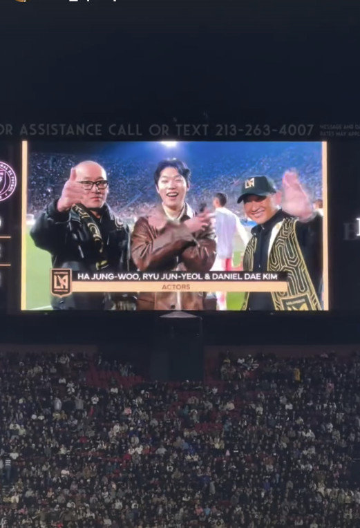 하정우, 류준열, 대니얼 대 킴/인스타그램 캡처 하정우는 지난 22일(현지 시각) 미국 로스앤젤레스(LA) 메모리얼 콜리세움에서 열린 미국 메이저리그사커(MLS) 2026시즌 정규리그 개막전을 관람했다. 손흥민의 소속팀 로스앤젤레스 FC와 리오넬 메시의 소속팀 인터 마이애미 CF의 맞대결로 화제를 모은 이날 경기에서 하정우는 동료 배우 류준열, 대니얼 대 킴과 함께 중계 카메라와 전광판에 포착되기도 했다.