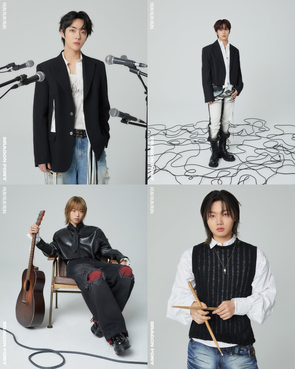 밴드 드래곤포니(Dragon Pony/안태규, 편성현, 권세혁, 고강훈)가 세 번째 EP ‘RUN RUN RUN(런런런)’의 Rhythm 버전 콘셉트 사진을 공개했다.
