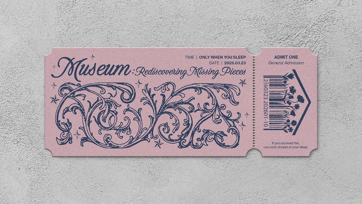 티켓에는 데뷔 타이틀곡명인 ‘MUSEUM’(뮤지엄)이 선명하게 새겨졌다. 현실에서 누구나 소중히 간직했던 잃어버린 꿈의 조각들을 꿈속 세상에 전시한다는 서정적인 이야기를 예고하며 보는 이들의 감성을 자극한다.