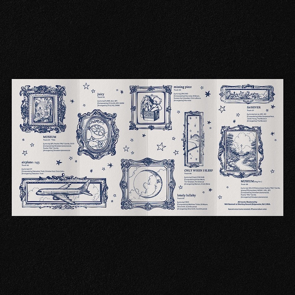 트랙리스트에 따르면 이번 앨범에는 타이틀곡 ‘MUSEUM’(뮤지엄)을 포함해 ‘airplane:143’(에어플레인:143), ‘juicy’(쥬시), ‘missing piece’(미싱 피스), ‘lonely lullaby’(론리 럴러바이), ‘ONLY WHEN I SLEEP’(온리 웬 아이 슬립), ‘forNEVER’(포네버), 타이틀곡의 영어 버전인 ‘MUSEUM(Eng Ver.)’까지 총 8곡이 수록된다.