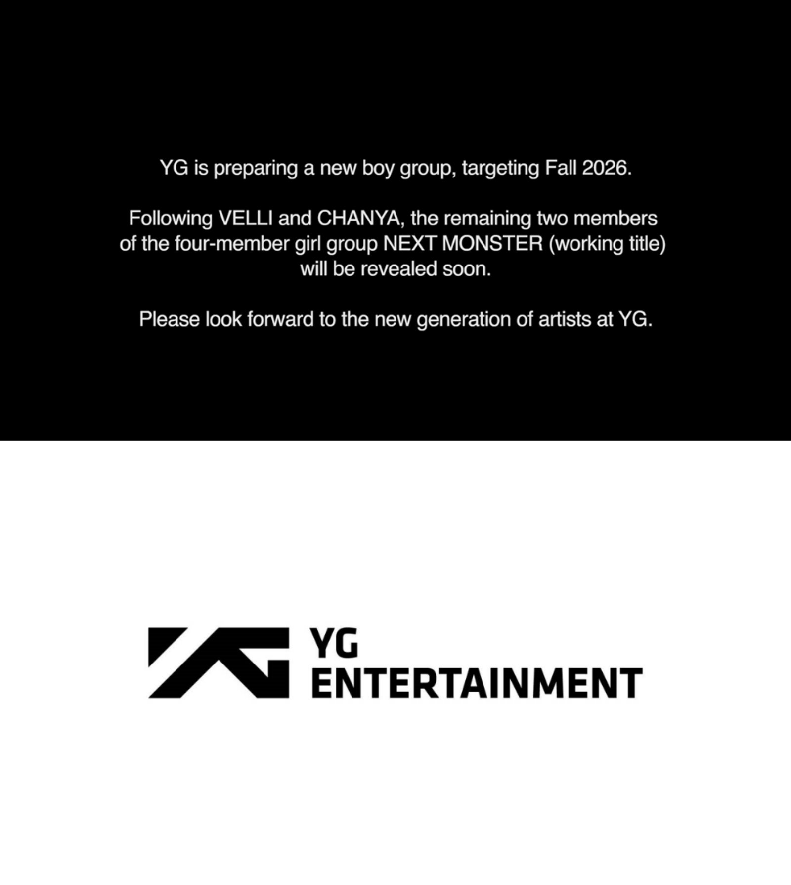 먼저 YG 측은 자막을 통해 “2026년 가을을 목표로 새로운 보이 그룹을 준비하고 있다”고 전했다. 지난해 양현석 총괄은 데뷔를 염두에 둔 남자 연습생 팀이 있음을 밝히며 “계속 이 친구들을 탐구하고 분석하고 있다. 내년에는 한 팀을 꼭 론칭하고 싶다”는 의지를 전한 바 있다. 이로써 YG는 트레저 이후 6년 만에 새로운 보이 그룹을 선보인다.
