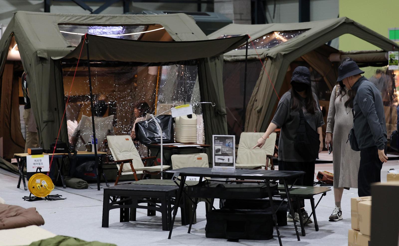 16일 오전 서울 강남구 SETEC에서 열린 ‘2025 더 골프쇼 & 더 캠핑쇼 in 서울’에서 관람객들이 텐트와 캠핑용품들을 살펴보고 있다. 전시는 이날부터 19일까지 진행된다.