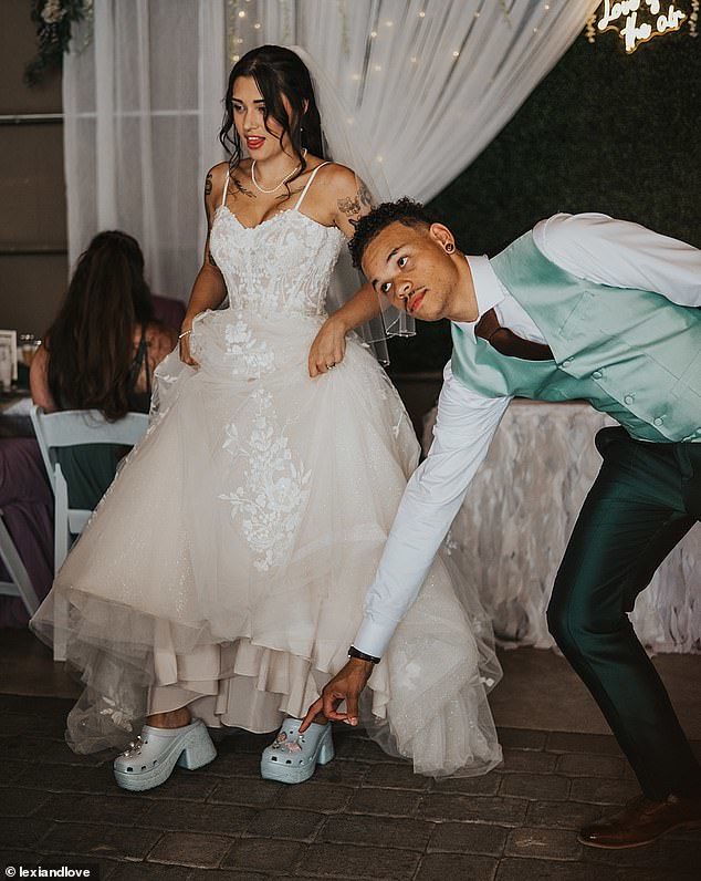 15일(현지시간) 영국 데일리메일에 따르면, 미국 워싱턴 출신 브라이스는 지난 7월 자신의 결혼식에서 하늘색 ‘신데렐라 크록스’를 신었다.