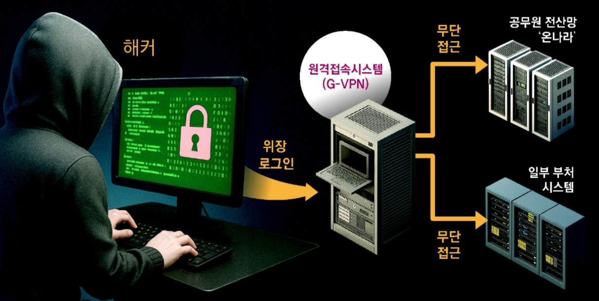 행정안전부와 국가정보원에 따르면 2022년 9월부터 올해 7월까지 공무원의 정부 전산망 접속용 인증서인 행정전자서명(GPKI) 650여 건과 12명의 비밀번호가 탈취됐다. 해커들은 공무원들이 청사 밖에서 쓰는 개인 PC에 악성코드를 심어 정보를 빼낸 것으로 추정된다. 해커들은 훔친 정보로 공무원인 것처럼 정부의 원격근무 시스템에 접속했다. 정부는 어떤 해커들이 어떤 비밀등급의 내부 정보를 얼마나 들여다봤는지, 또 빼간 게 있는지조차 파악하지 못하고 있다.