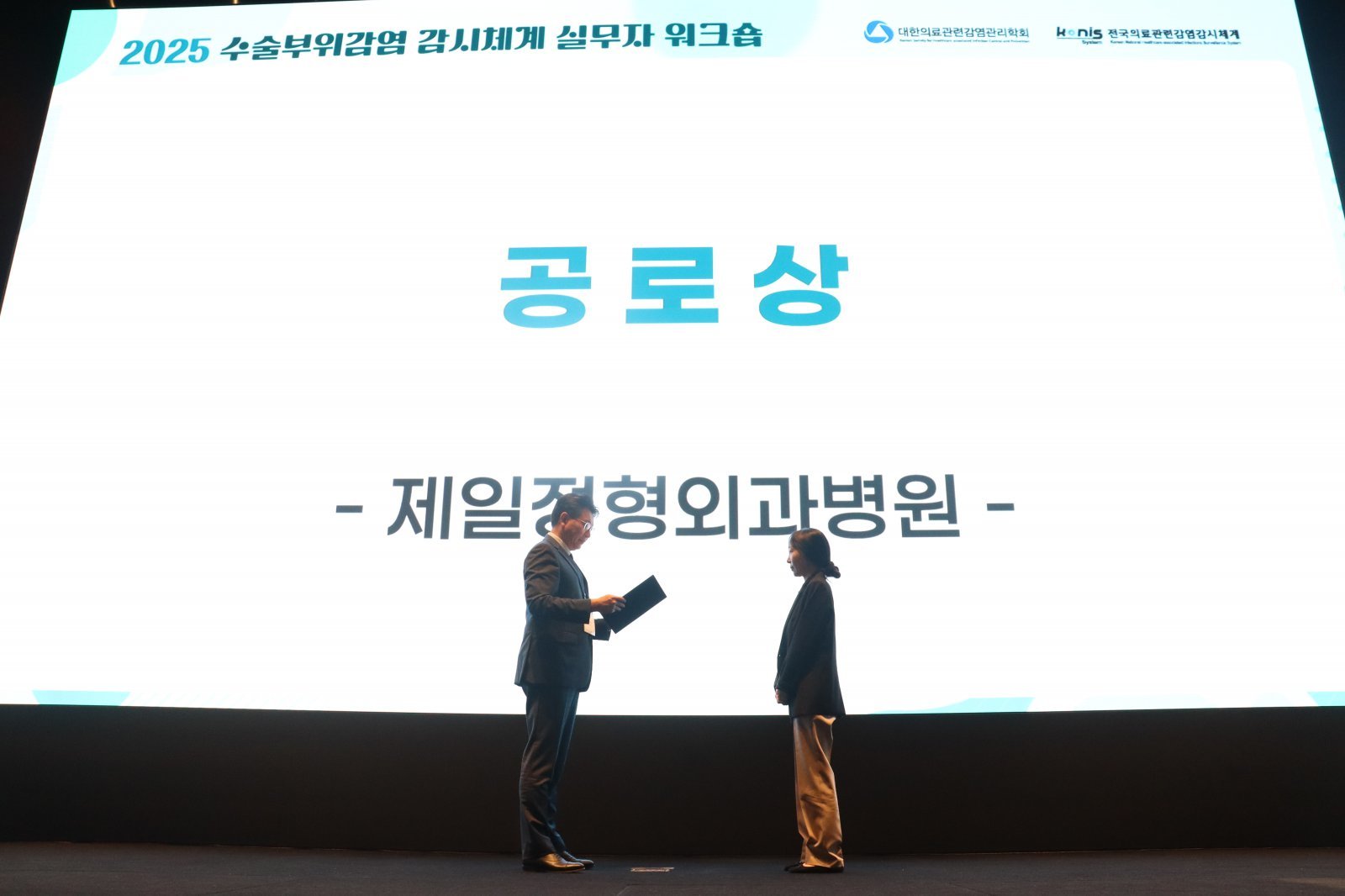 제일정형외과병원은 수술 부위 감염 감시(SSI) 부문에서 우수한 성과를 인정받아 공로상을 받았다. 이번 수술 부위 감염 부문 공로상은 349개 기관 중 10개 기관에 수여됐다.