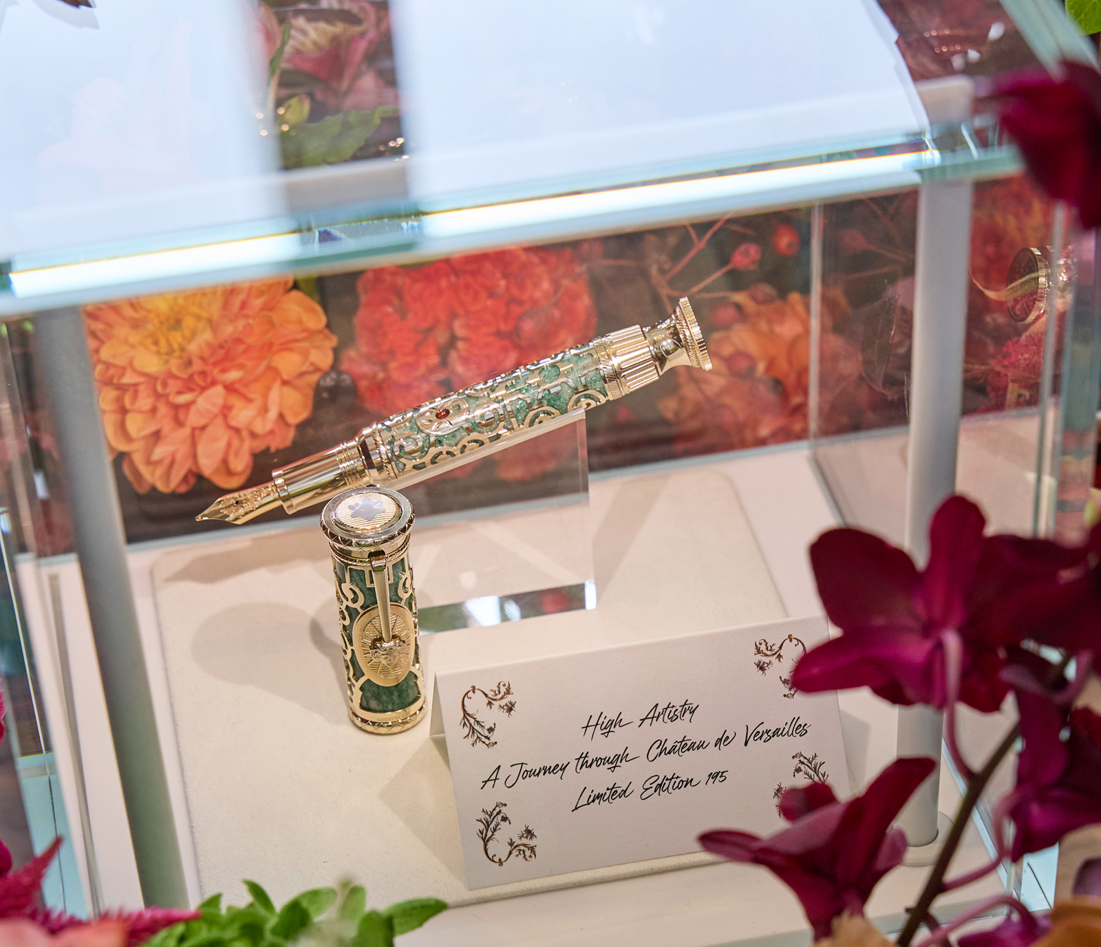 프랑스 루이 14세가 지은 베르사유 궁전의 ‘오랑주리 정원’이 만년필로 태어났다. 오랑주리 정원 특유의 기하학적 무늬 잔디밭은 청록색의 그린 아베츄린 스톤으로, 190본의 오렌지나무 화분은 레드 가넷으로 표현했다. 몽블랑이 국내에서 처음 선보인 ‘하이 아티스트리 그랑되르(고귀한) 컬렉션-샤토 드 베르사유’가 그 주인공이다.