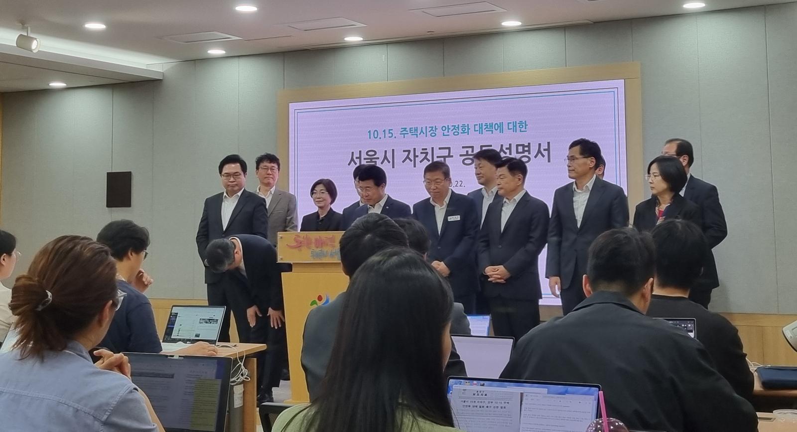 서울 25개 자치구 중 15곳 구청장들이 정부의 ‘10·15 주택시장 안정화 대책’ 철회를 요구하며 공동성명서를 발표했다. 모두 국민의힘 혹은 무소속이고 더불어민주당 소속은 참여하지 않았다. 이들은 정부가 서울 전역을 토지거래허가구역과 투기과열지구로 지정한 조치에 대해 “지방자치를 무시한 일방적 결정”이라며 강하게 반발했다.