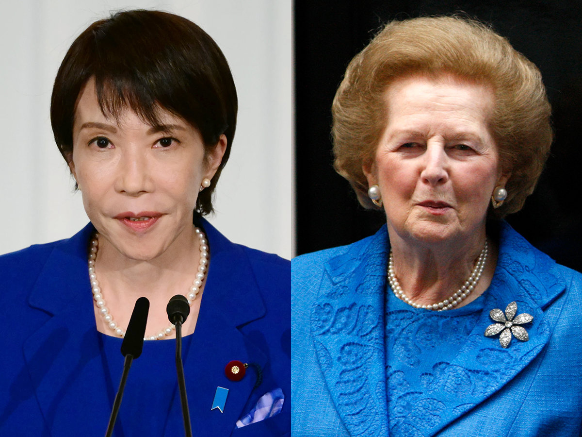 일본 최초의 여성 총리에 오른 다카이치 사나에(高市早苗·64) 총리가 과거 공식석상에서 파란색 옷과 진주 목걸이를 자주 착용한 ‘철의 여인’ 마거릿 대처 전 영국 총리를 본따 푸른 옷과 진주 목걸이를 즐겨 한다는 분석이 제기된다. 푸른색은 영국 보수당의 상징색이며 대처 전 총리 또한 영국 최초의 여성 총리다.