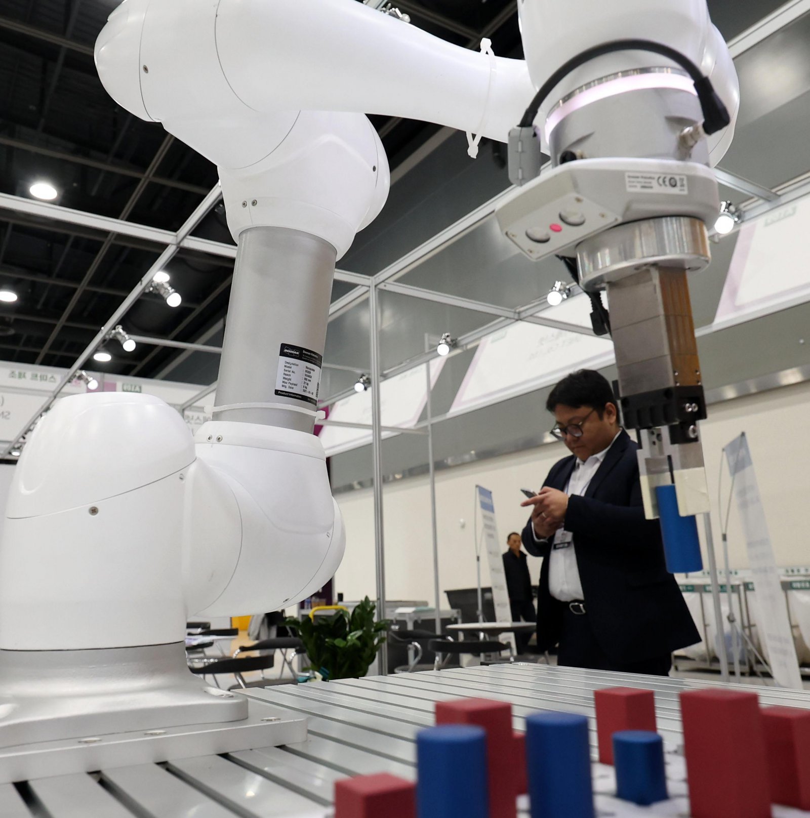 22일 서울 서초구 aT센터에서 열린 2025 제조혁신코리아에서 비전 AI 로봇이 시연되고 있다. 120여 개사가 참여한 이번 전시는 스마트제조혁신협회가 주관하고 중소벤처기업부, 과학기술정보통신부 등의 후원으로 열렸다.