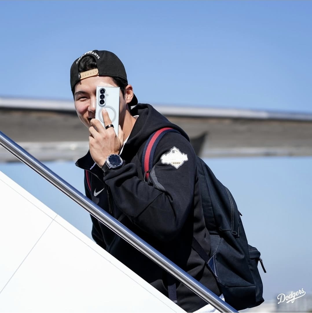 다저스 구단은 23일(한국 시간) 구단의 공식 사회관계망서비스(SNS)를 통해 WS 1차전이 열리는 캐나다 온타리오주 토론토로 향하는 비행기에 탑승하는 선수들의 모습을 공개했다.