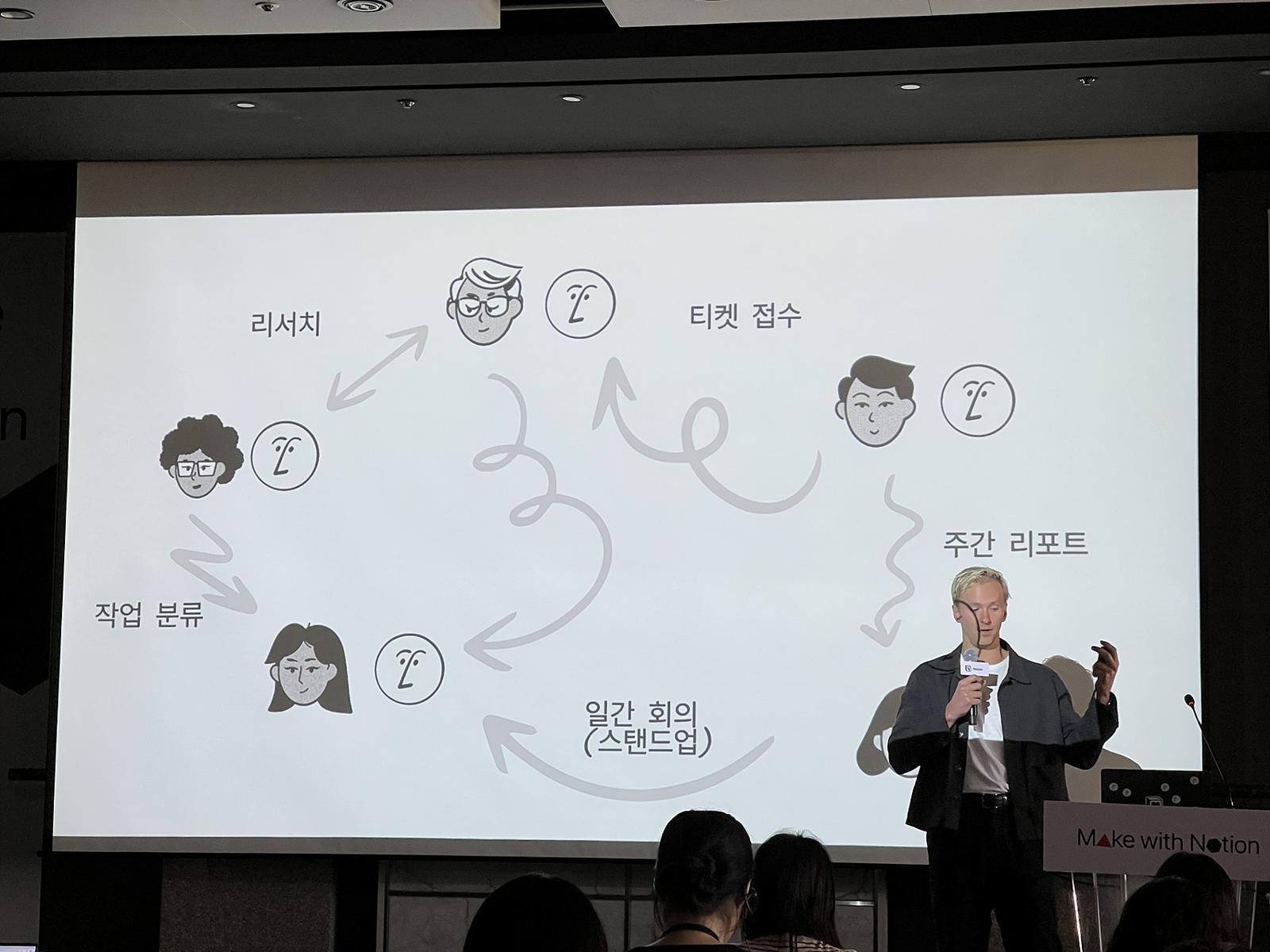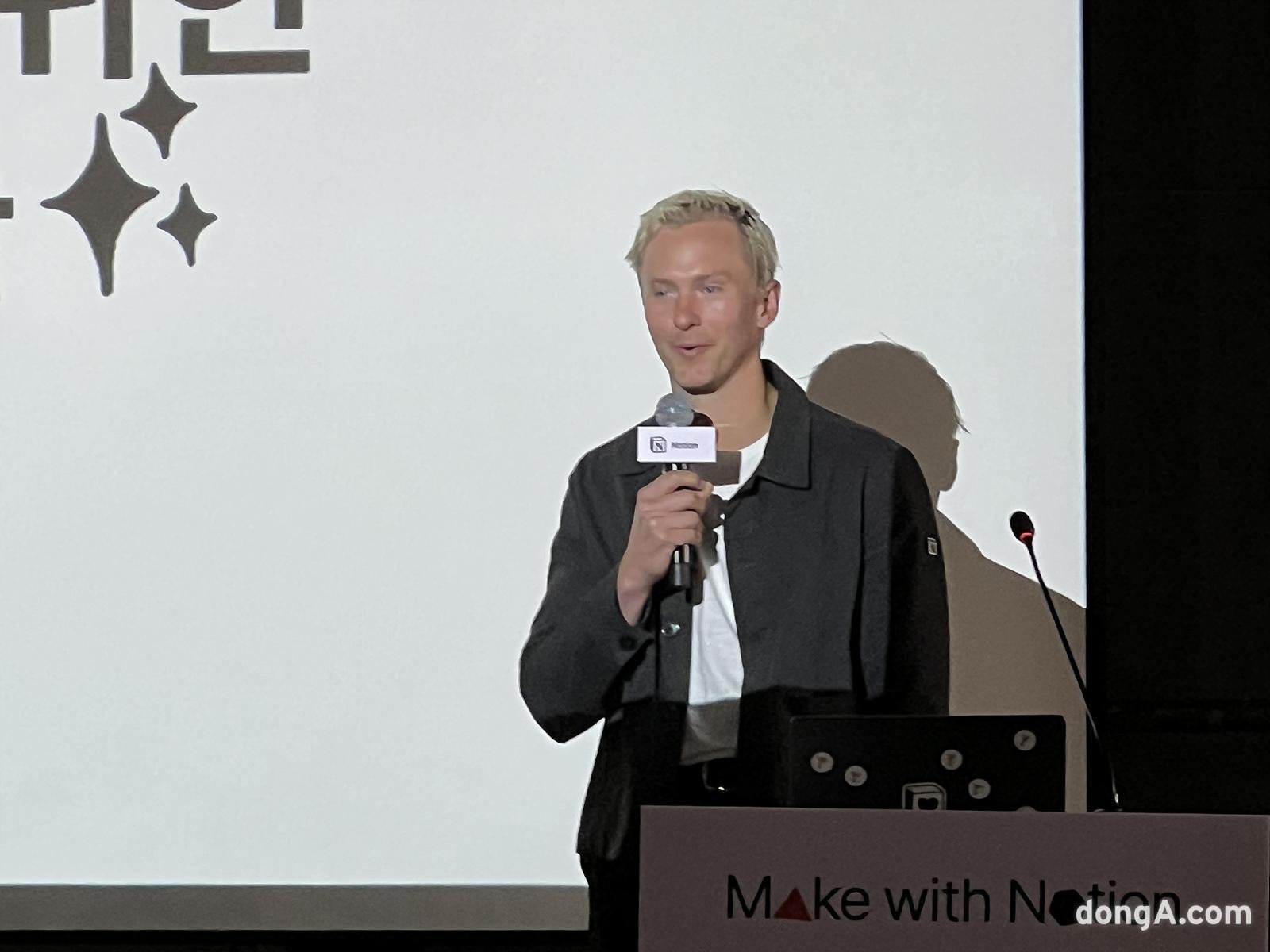 퍼지 코스로우샤히 노션 CTO가 기자간담회에서 발표를 하고 있다.