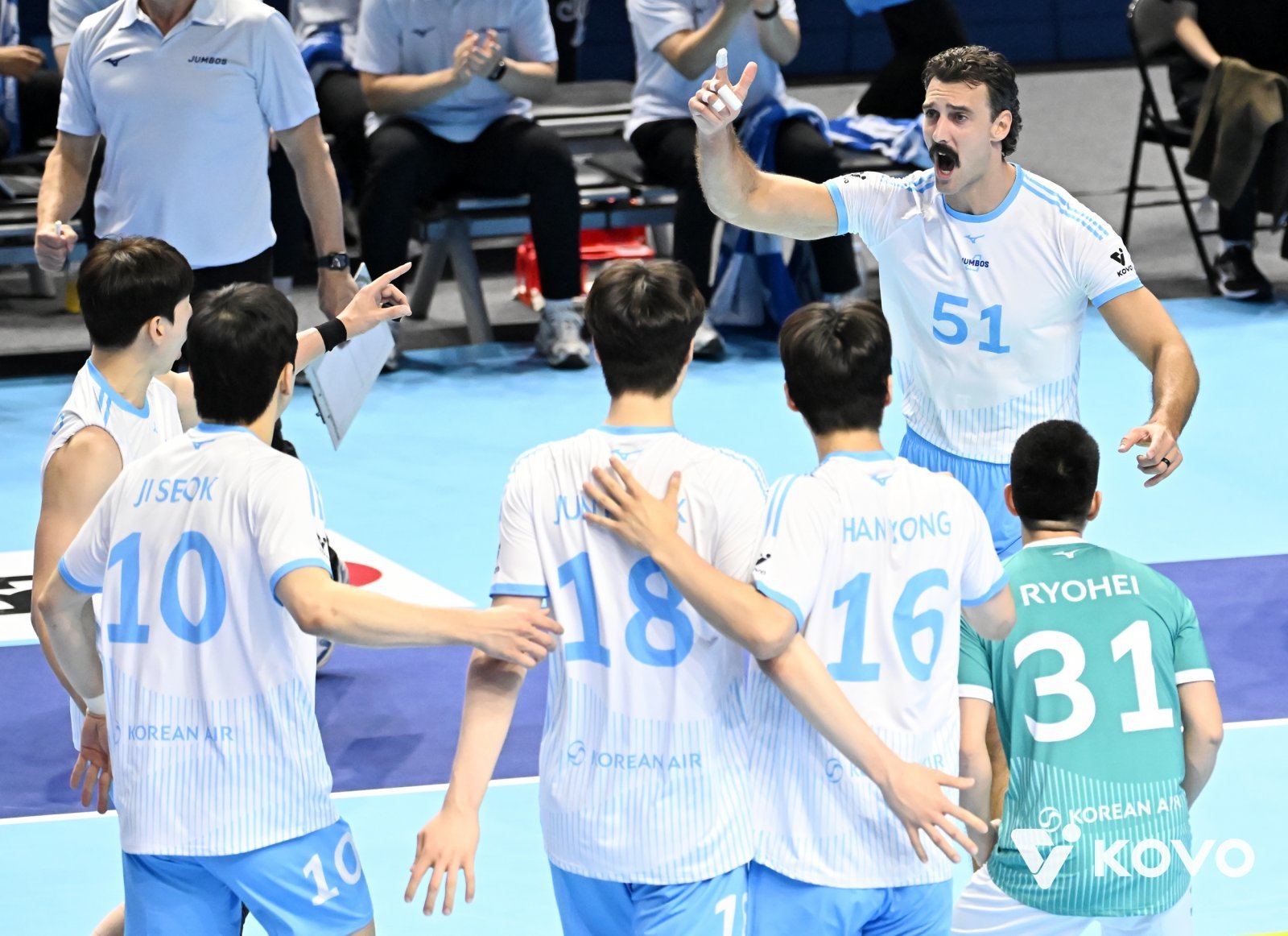 여세를 몰아 대한항공은 4세트도 따냈다.