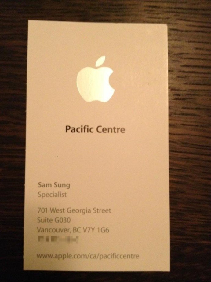 샘 스트루언의 당시 애플스토어 ‘샘성’ 명함사진 (출처=인터넷 커뮤니티 ‘레딧’)