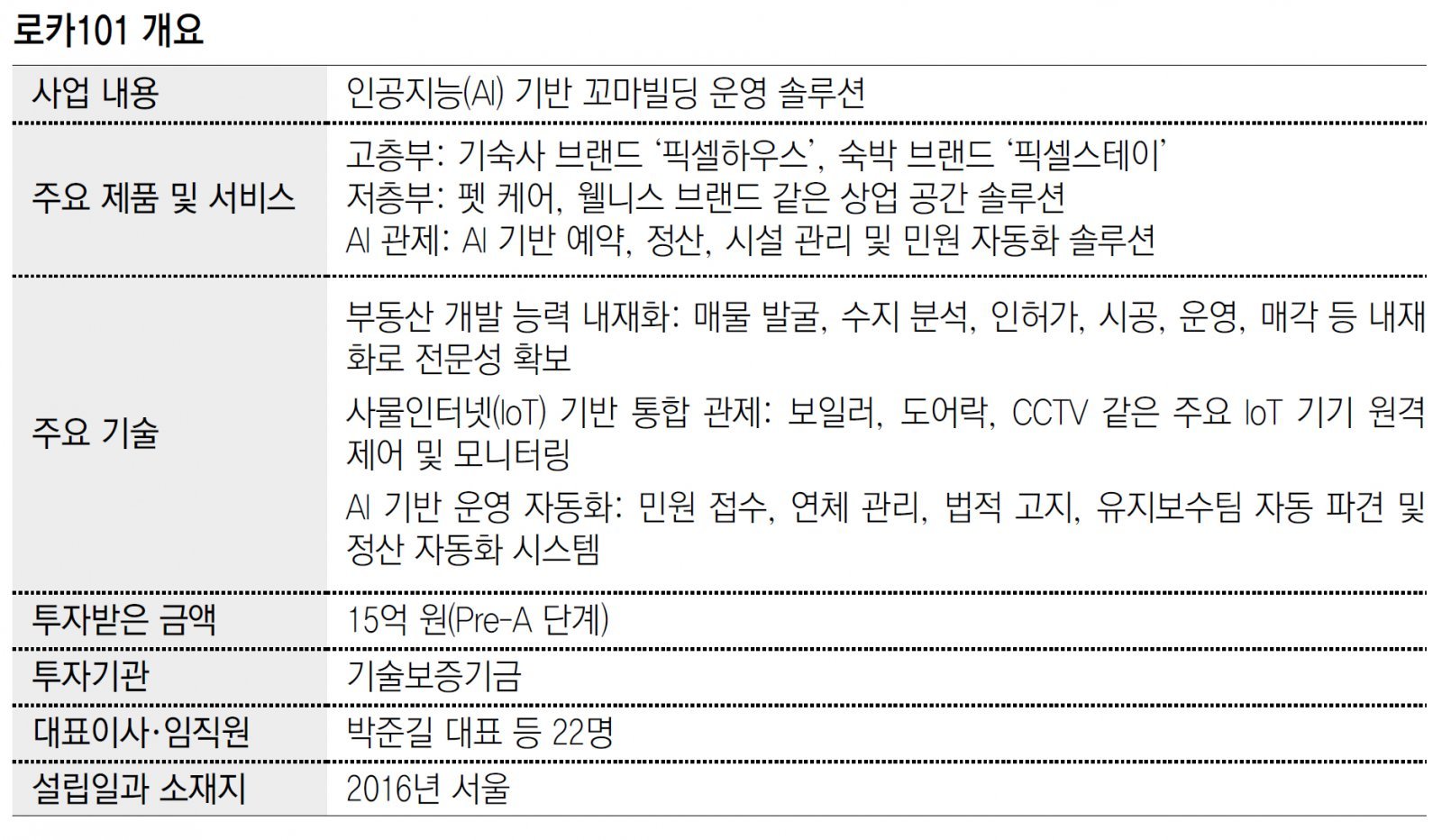 로카101은 내년에 전국 100개 지점을 목표로 하고 있다. 픽셀하우스 외에 픽셀스테이(숙박) 픽셀펫(펫 케어) 등으로 사업을 확장하기 위해 시험 운영하고 있다. 꼬마빌딩 전체를 개발하기 위해 사모펀드, 자산운용사와 협력해 블라인드 펀드를 조성할 계획도 있다.