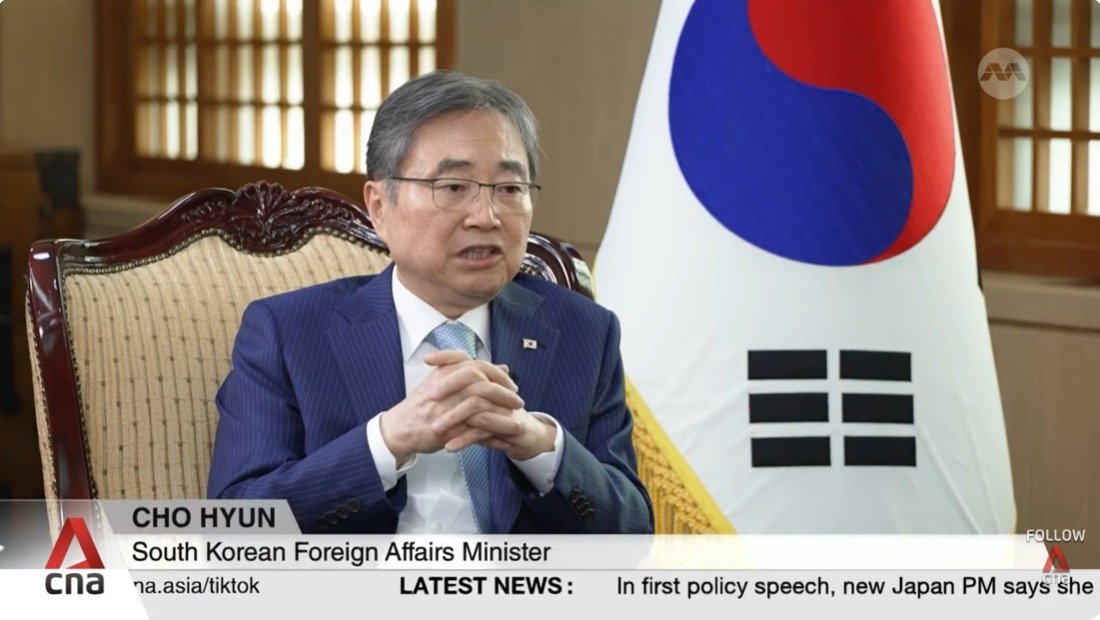 조현 외교부 장관이 24일 CNA 방송과 인터뷰를 실시했다. 유튜브 갈무리
