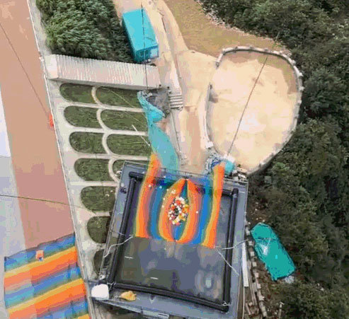 최근 소셜네트워크서비스(SNS)에 공개된 한 영상을 보면 번지점프 업체 관계자들이 무거운 모래주머니를 번지점프대에서 떨어뜨리자 안전망이 크게 출렁이는 장면이 담겼다. 이에 중국 내에서도 해당 번지점프가 위험하다는 우려가 번지고 있다. 바람 등 기상 상황에 따라 안전망 위로 착지하지 못하면 직접적인 인명 피해로 이어질 수 있기 때문이다.