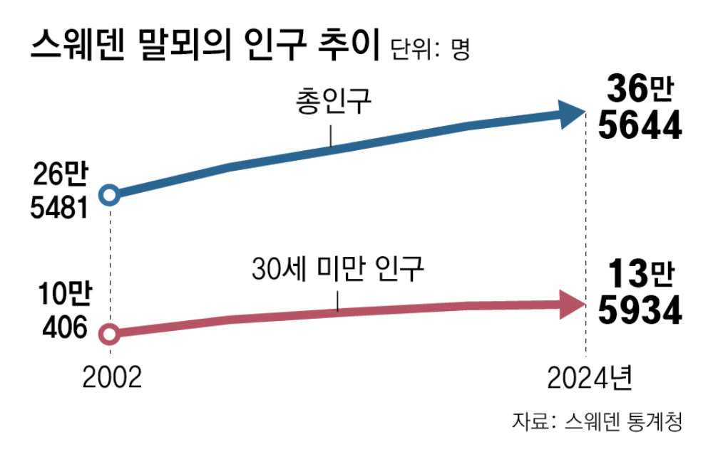 인구 36만6000여 명의 말뫼는 수도 스톡홀름, 2대 도시 예테보리에 이은 3대 도시다. 한때 조선, 자동차 산업 등으로 유명했지만 급속한 세계화 여파 등으로 주요 공장이 속속 문을 닫았다. 이 여파로 1990년대 초 인구 역시 약 22만 명으로 줄었고 실업률 또한 22%로 치솟았다.