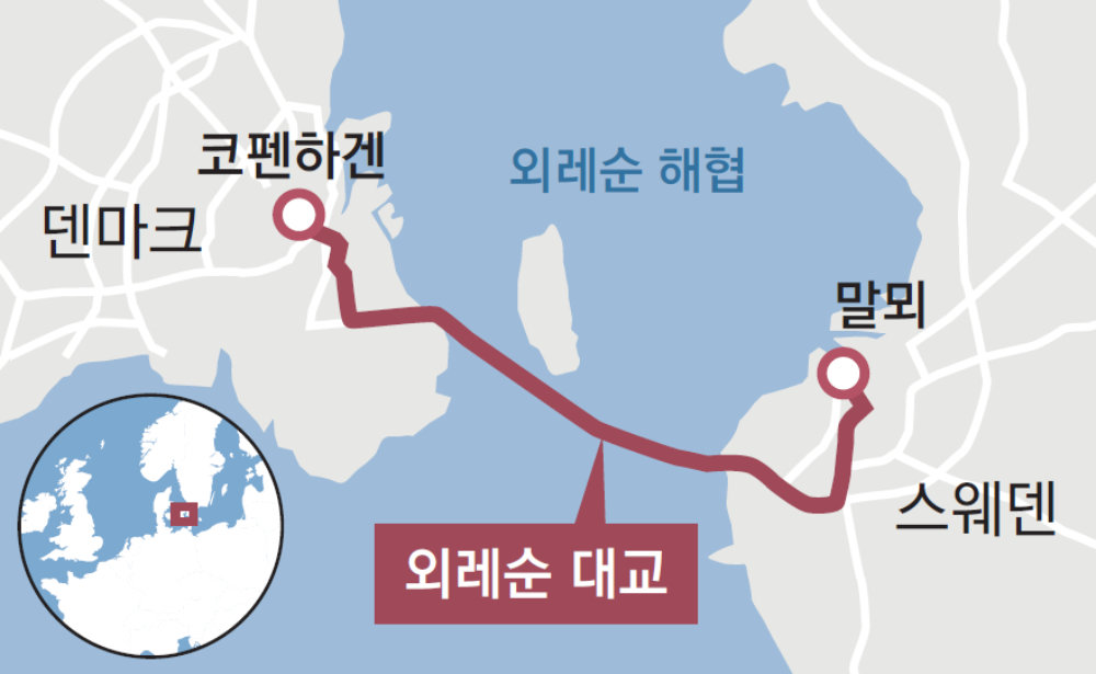 13일(현지 시간) 스웨덴 말뫼에서 약 40km 떨어진 이웃 나라 덴마크의 수도 코펜하겐을 이어주는 ‘외레순 대교’를 열차를 타고 직접 건넜다. 말뫼역에서 코펜하겐역까지 걸린 시간은 41분. 매일 약 4만1000명이 이용하며 10∼15분마다 양쪽을 오가는 기차가 배치돼 있다.