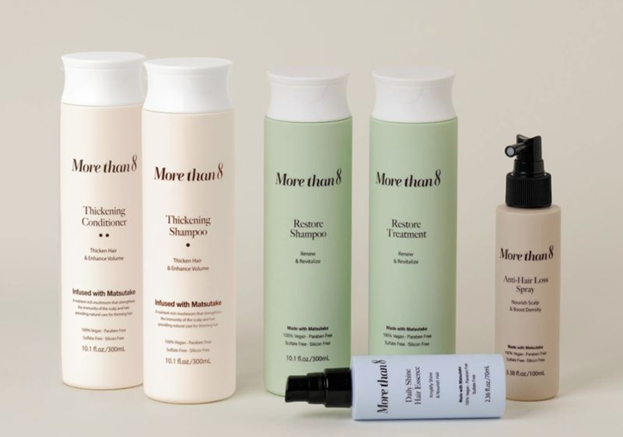 모어댄에잇에 따르면 대표 제품인 탈모 방지 샴푸는 인체 적용 시험에서 머리 빠짐 개선율 83.7%를 입증했다. 또한 식약처로부터 탈모 증상 완화 기능성 화장품 인증을 획득했으며, 비건 인증과 유해 성분 배제 포뮬러로 글로벌 클린뷰티 기준에도 부합한다.