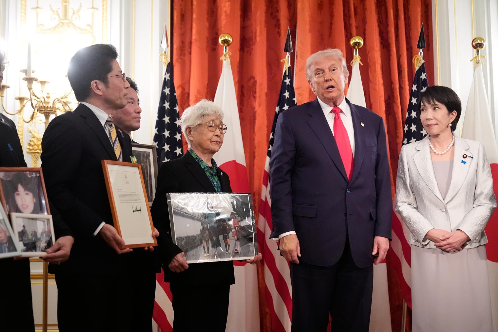 니혼게이자이신문(닛케이) 등에 따르면 트럼프 대통령은 이날 다카이치 사나에 일본 총리와 함께 도쿄 영빈관에서 납북 피해자와 만나 “미국은 (피해자) 가족, 그리고 일본과 함께 있다”고 밝혔다.