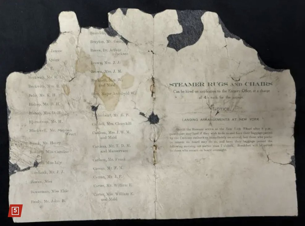 이번 경매에 포함된 아이템 중에는 유일하게 남아 있는 1등석 승객 명단과 화이트 스타 라인이 서튼 가족에게 보낸 ‘중요 안내문’이 있다.