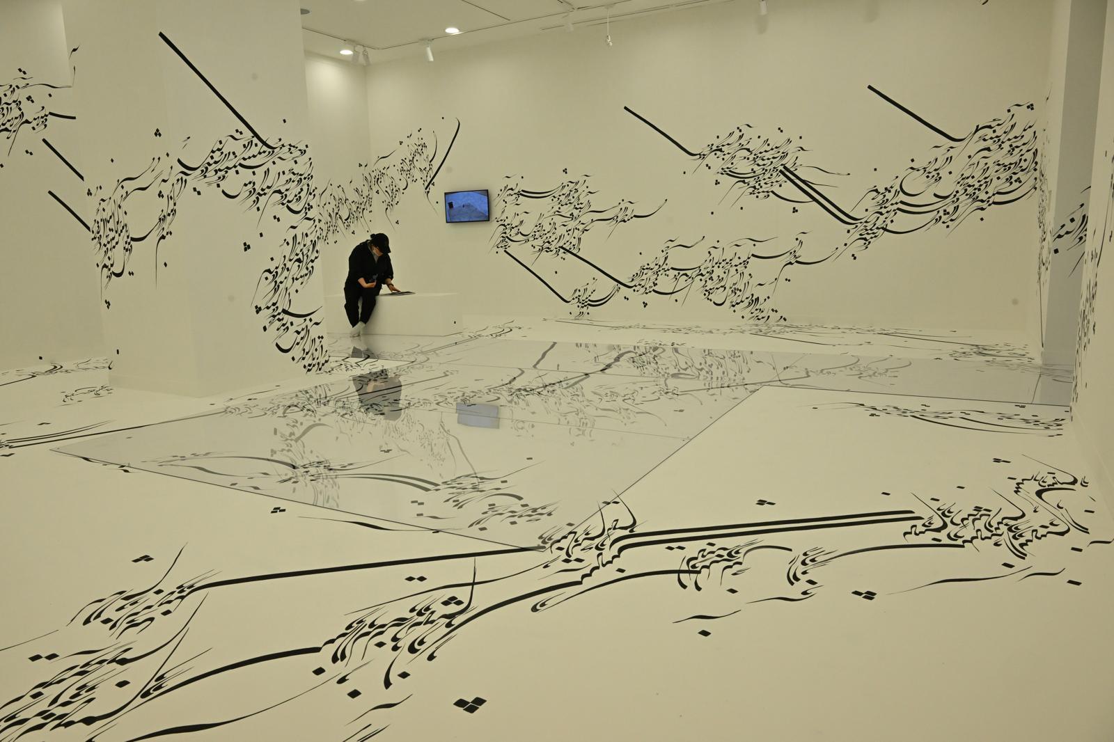 ‘2025 전남국제수묵비엔날레’ 참여 작가인 파라스투 포로우하르의 작품 ‘Written Room’. 목포문화예술회관 전시장 내부 벽면에 드로잉 형식으로 꾸몄다. 전남도 제공