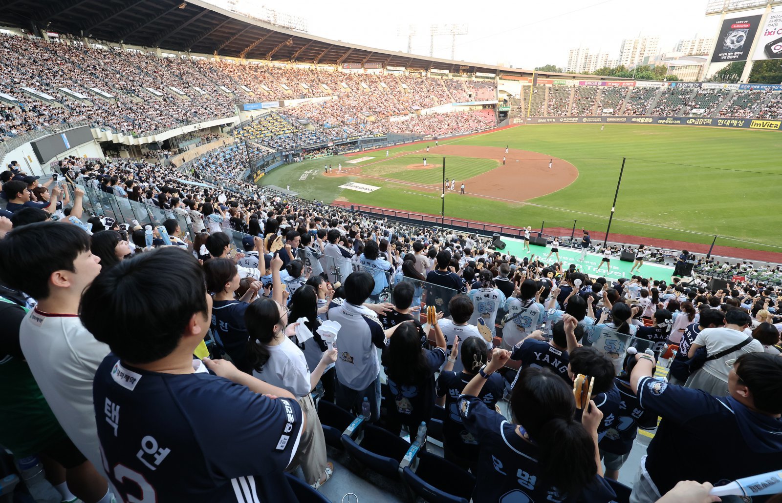 한국 프로야구 KBO리그가 2년 연속이자 역대 최소 경기 1000만 관중을 달성했다. 23일 오후 서울 송파구 잠실야구장에서 열린 KT와 두산의 경기를 찾은 관중들이 응원을 하고 있다. 2025.8.23 뉴스1