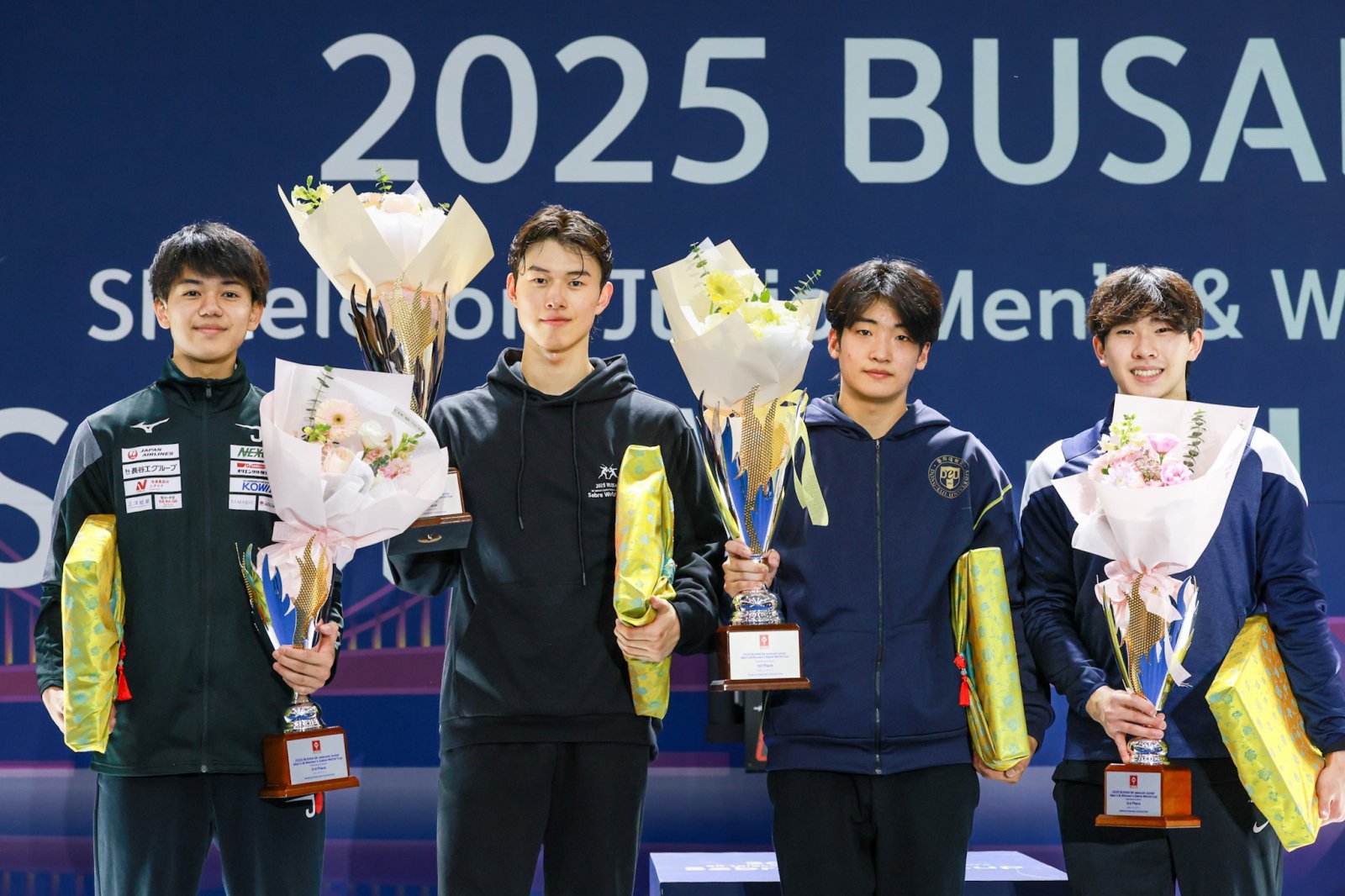 이준희는 1일 부산 경성대학교 체육관에서 열린 ‘부산 SK텔레콤 주니어 남녀 사브르 월드컵’ 남자 사브르 개인전에서 김지환을 15-7로 꺾고 금메달을 땄다. 김지환은 은메달을 목에 걸었다.