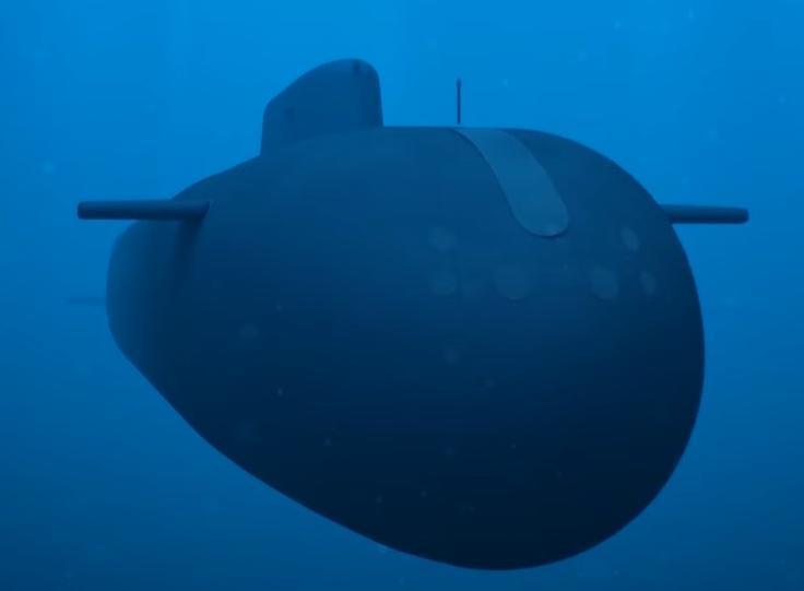 블라디미르 푸틴 러시아 대통령이 지난달 29일 실험 성공을 발표한 핵 추진 수중 무인기(드론) ‘포세이돈’을 탑재한 모함 이미지. 러시아 측은 초대형 잠수함 모함 한 척에 포세이돈 8개를 탑재할 수 있으며, 이 무기가 수심 1km에서 시속 200km로 목표물에 접근해 요격이 불가할 뿐 아니라, 위력은 핵탄두 탑재가 가능한 차세대 대륙간탄도미사일(ICBM) ‘사르마트’를 능가한다고 설명한다. 사진 출처 러시아 국방부