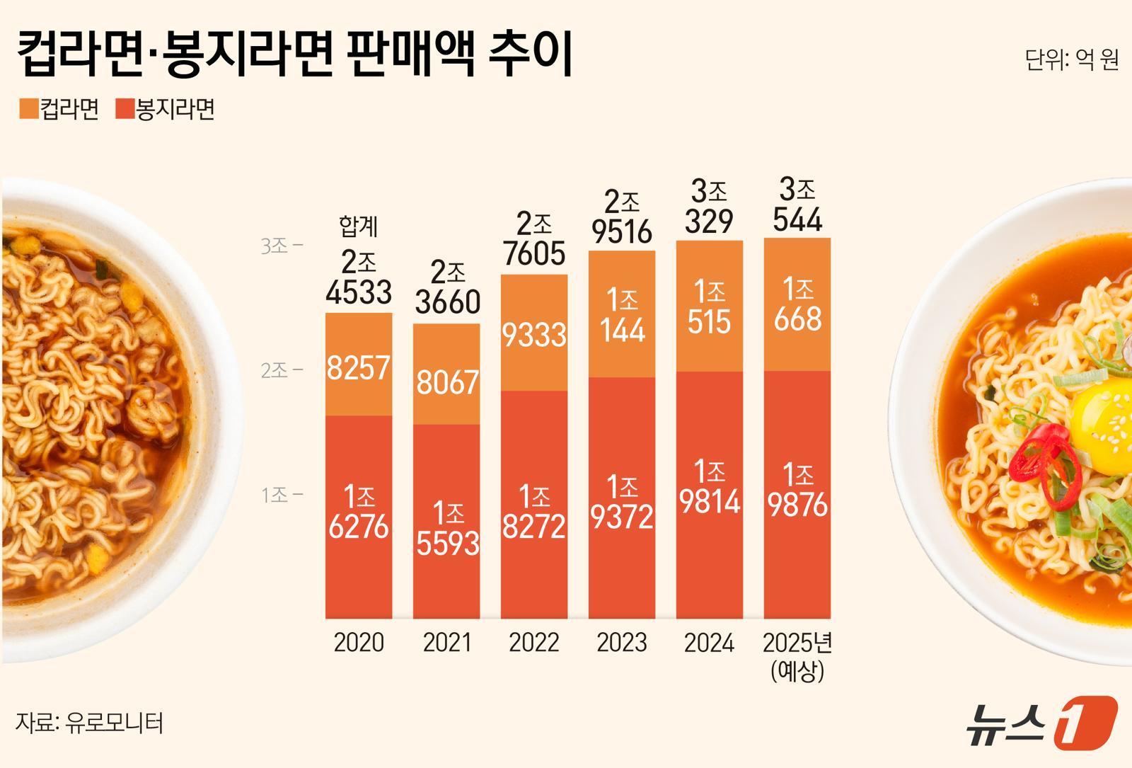 컵라면 시장 3년 연속 1조 돌파…봉지면은 2조 문턱 앞두고 제자리