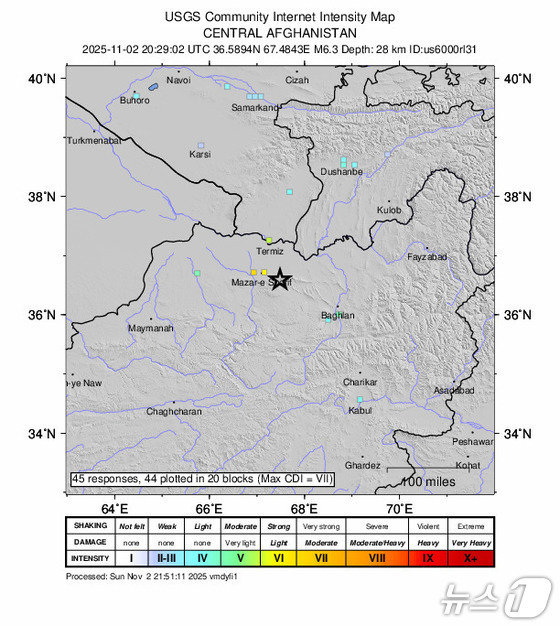 미국 지질조사국(USGS)에 따르면 3일(현지시간) 오전 0시 59분 아프가니스탄 북부 발흐주의 도시 마자르이샤리프와 쿨름 인근에서 규모 6.3의 지진이 발생했다.