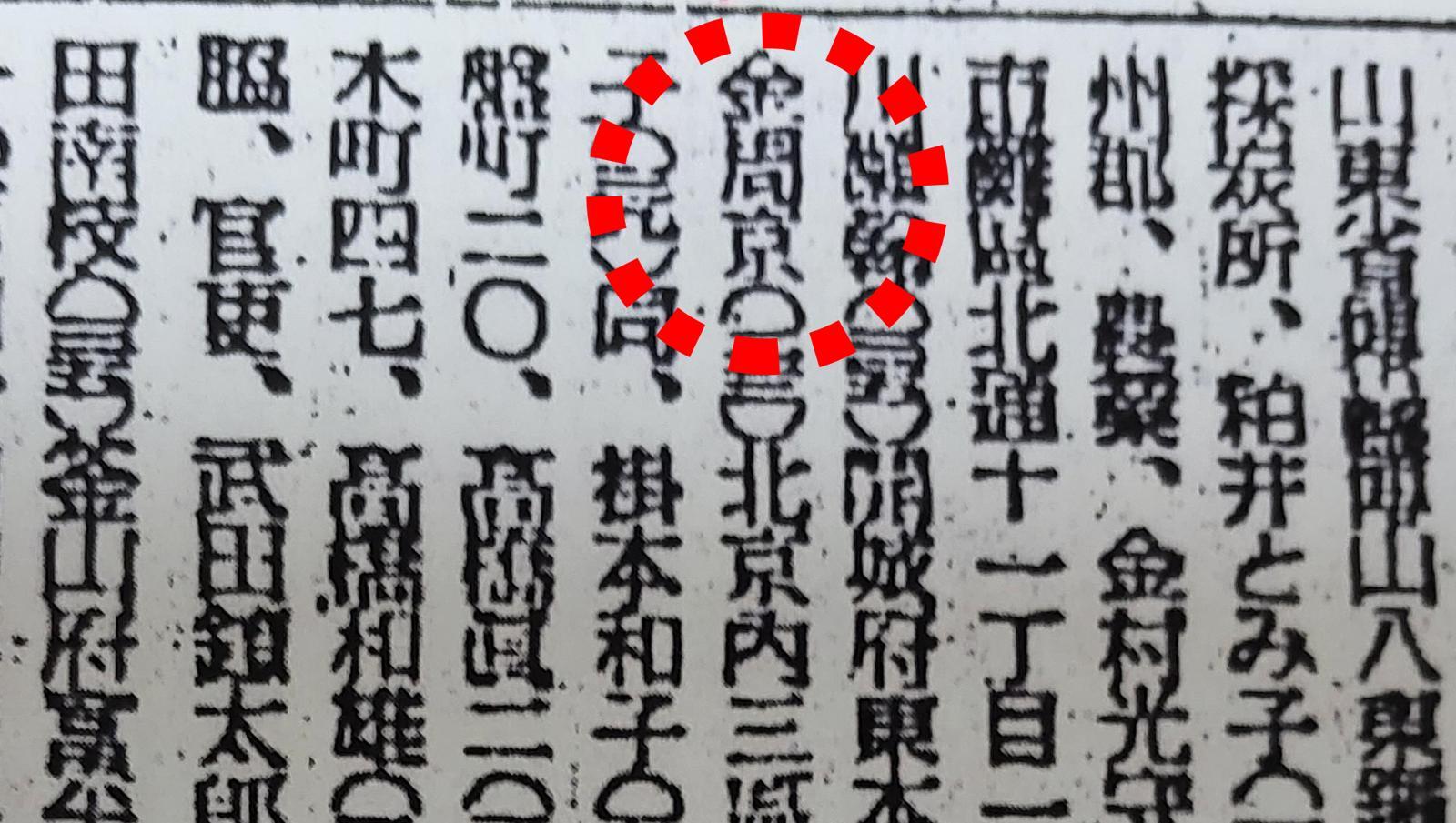 1943년 일본 후쿠오카 해역에서 침몰한 연락선 ‘곤론마루’ 승선자 명단에 적힌 김세량 씨 부친 ‘김주경(金周京)’ 씨 이름(점선 원 안). 김문길 한일문화연구소장 제공