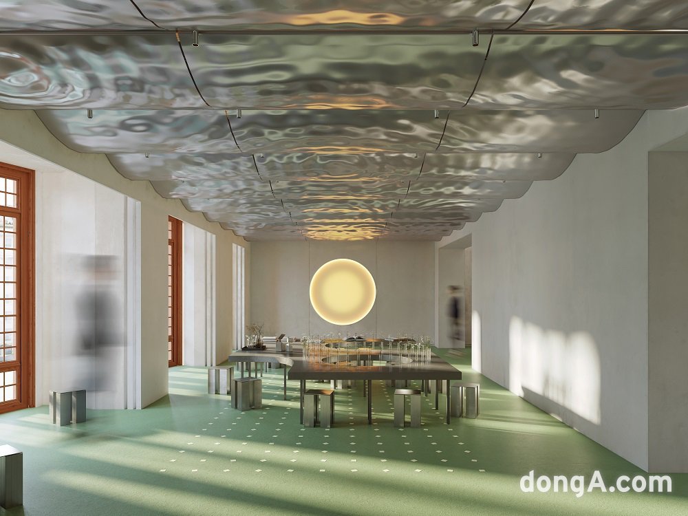 이번 재설계는 바르셀로나의 건축회사 메수라(Mesura)가 맡았다. 메수라는 목재와 스테인드글라스 등 기존 건축 요소를 최대한 유지하면서도, 로봇 기술을 활용해 곡선형 금속 천장에 동심원 형태의 물결 무늬를 스크린 프린팅하여 현대적인 감각을 더했다.