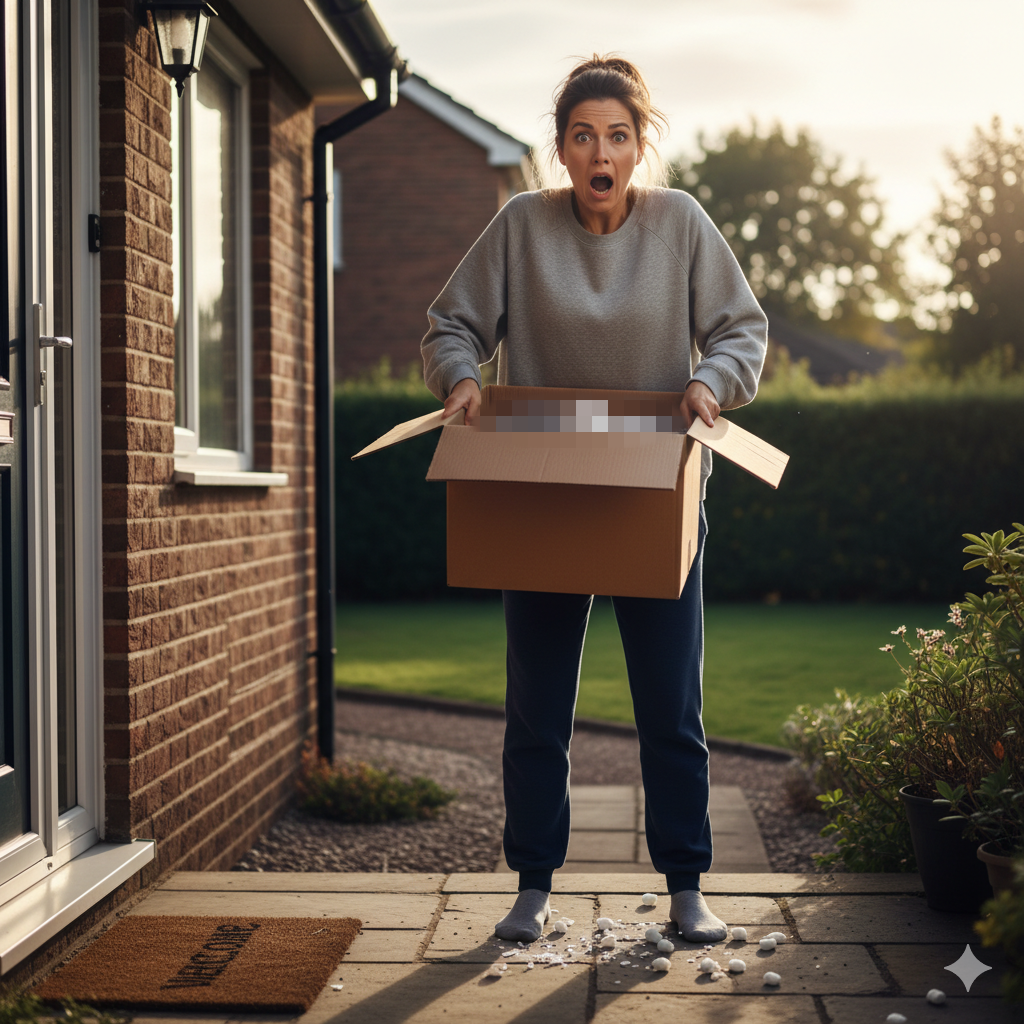 미국 켄터키주의 한 주택으로 배달된 택배 상자 안에서 사람의 팔과 손가락이 나오는 충격적인 일이 벌어졌다. (구글 gemini로 표현한 이미지)