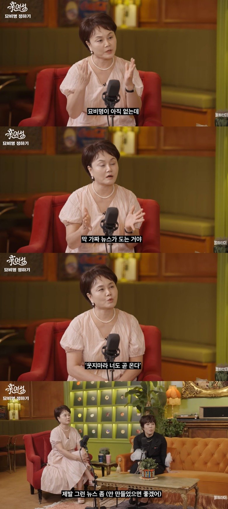 이어 “유성 오빠는 수목장하기 전 납골당에 계시고, 묘비명은 아직 없다. 그런데 SNS에 ‘웃지 마, 너도 곧 온다’는 묘비명이 떠돌더라. 말도 안 되는 얘기다”라고 말했다.