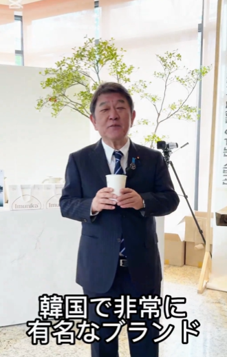 영상을 보면, 모테기 외무상은 한 손에 커피잔을 들고 활짝 웃고 있었고, 그 뒤로 보이는 테이블에는 APEC 공식 커피 협찬사 이뮤니카 커피 쇼핑백들이 놓여 있었다.