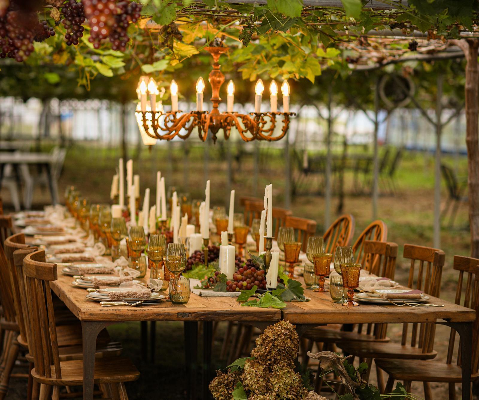 농장 한가운데 놓인 긴 테이블에는 대지의 색을 닮은 린넨 테이블보가 깔려 있었다.그 위로 포도송이와 넝쿨, 마른 수국, 허브 잎이 놓였다. 황혼이 깔리자 양초와 샹들리에의 불빛이 와인잔과 유리병에 반사돼 포도밭 전체가 따뜻한 금빛으로 물들었다. 테이블에 둘러앉은 손님들은 포도 향을 사이에 두고 대화를 나누며 금세 어우러졌다. 복합문화공간 대표, 도예가, 원예 전문가, 의사 등 하는 일은 달라도 정원과 미식에 대한 관심은 한결같이 높았다. 한 손님이 데려온 ‘시월이’라는 이름의 강아지, 밤의 포도 농장을 아장아장 걷던 오리들도 이 특별한 순간을 함께 한 생명체들이었다.