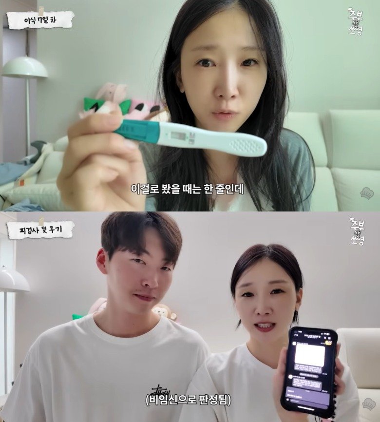 이후 남편 문경찬(33)과 함께 병원을 찾아 받은 피검사에서도 비임신 판정을 받았다. 문경찬은 “다음에 더 열심히 노력하자. 힘내자”며 다정하게 아내를 위로했다.
