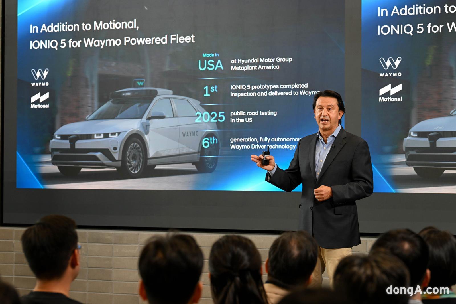 호세 무뇨스 현대차 사장이 타운홀 미팅 2025 리더스 토크에서 임직원들에게 메시지를 전하고 있다.이영호 글로벌사업관리본부 부사장과 김창환 전동화에너지솔루션담당, 김혜인 HR본부 부사장 등도 타운홀 미팅에서 다양한 질문에 답하면서 직원들과 소통했다. 이영호 부사장은 글로벌 시장에서 부상하는 신흥 자동차 제조업체들의 경쟁력에 대한 대응 방안을 설명했다.