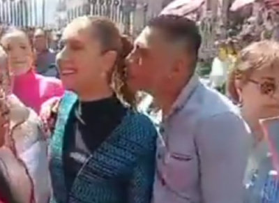 4일(현지 시간) 멕시코 수도 멕시코시티 거리에서 클라우디아 셰인바움 대통령이 남성 취객으로부터 성추행을 당하고 있다. 사진 출처 X