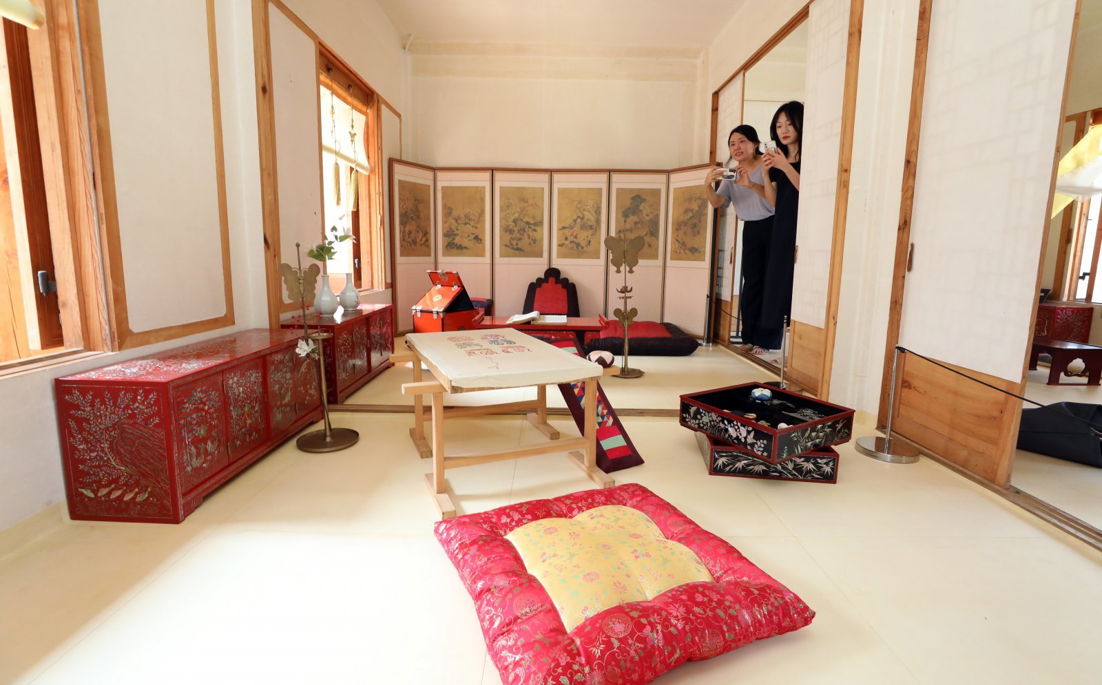 15일 경복궁 건청궁을 찾은 관람객들이 왕비의 공간인 공년합 정시합을 살펴보고 있다. 2023.08.15. 뉴시스
