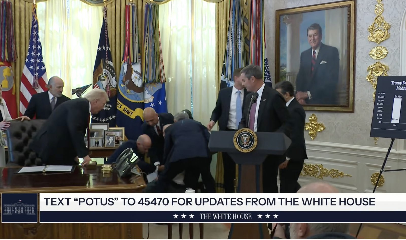 이후 캐롤라인 레빗 백악관 대변인은 성명을 통해 “최혜국 대우 협정 오벌 오피스 발표 중 한 기업 대표가 기절했다. 백악관 의료팀이 신속히 대응했으며 해당 남성은 무사하다”며 “기자회견은 곧 재개될 예정”이라고 밝혔다.