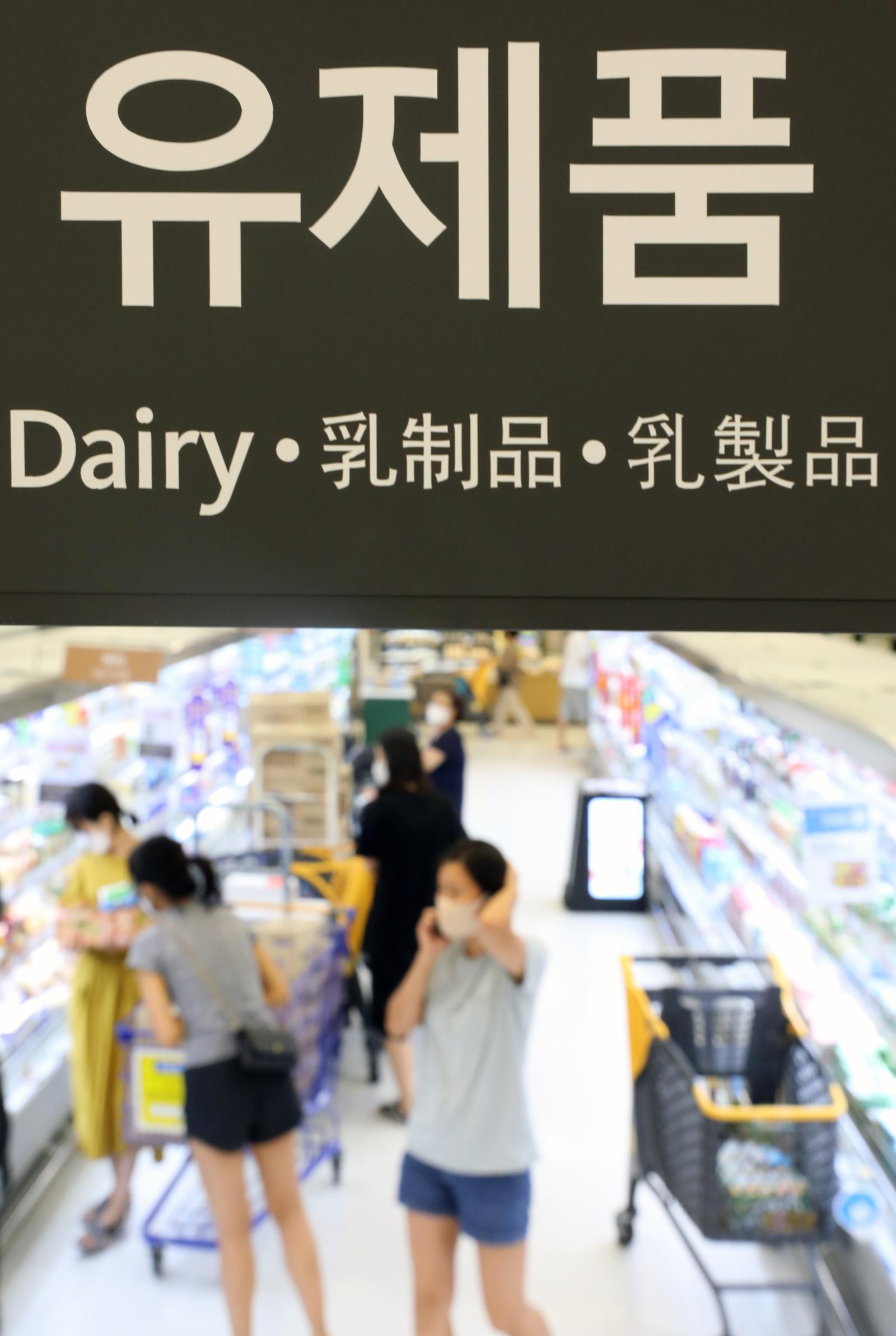 서울 시내 한 대형마트를 방문한 시민들이 유제품 코너에서 상품을 살펴보고 있다. 2022.08.19 뉴시스